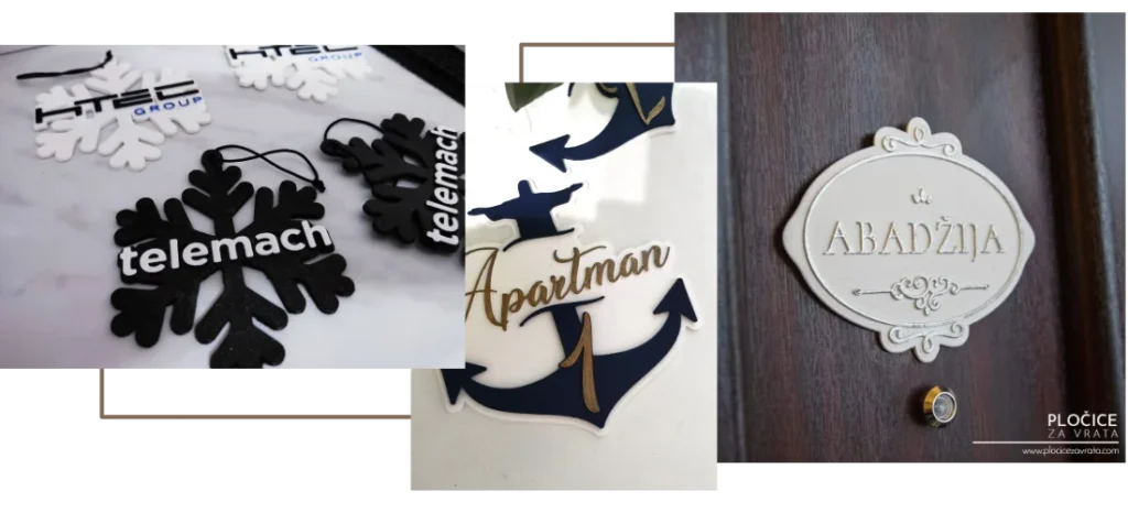 U našoj trenutnoj ponudi možete pronaći elegantne, jednostavne i šaljive personalizovane pločice za vrata te ukrase za jelku sa imenima i likovima. A to je samo početak – uskoro vam donosimo magnetiće, postere, šolje i ukrase za dječije sobe!