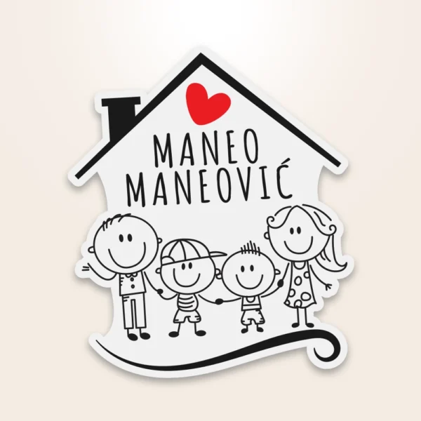 Toplina i obiteljski duh u vašem domu s pločicom “Family Home”. Ova prepoznatljiva pločica prikazuje simpatičnu ilustraciju obitelji uz naglašeno crveno srce u njihvom domu, simbolizirajući ljubav i zajedništvo. Izrađena od kvalitetnih materijala, idealan je dodatak za stvaranje ugodnog i privlačnog ulaza u vaš dom.