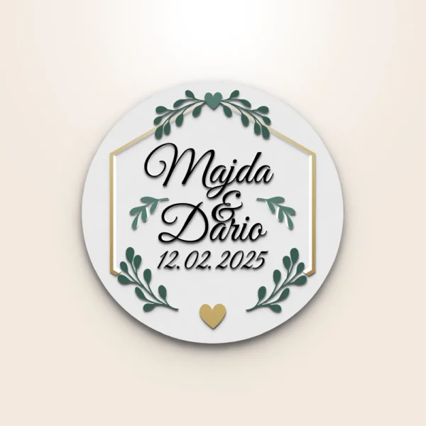 “Harmony” donosi prirodnu ljepotu u svaku priliku. Sa svojim profinjenim dizajnom listova, ovaj personalizirani magnet savršen je poklon za obilježavanje posebnih trenutaka vjenčanja ili godišnjica, donoseći sklad i eleganciju.