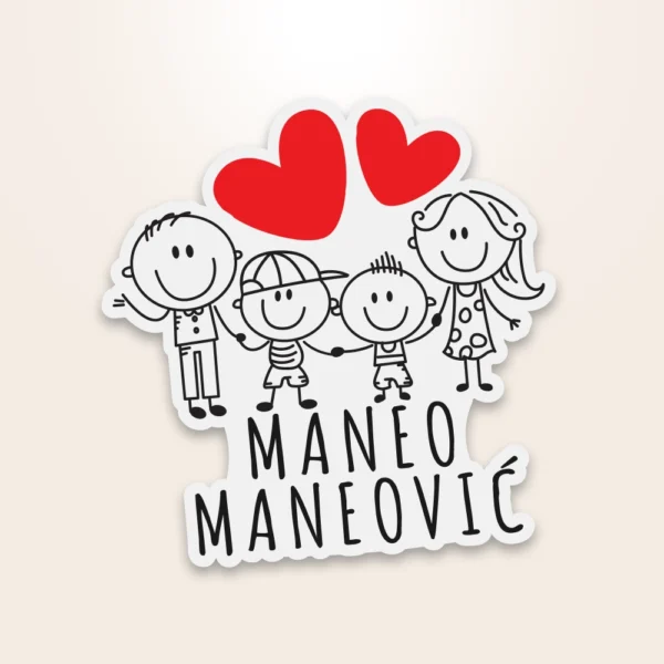 Toplina i obiteljski duh u vašem domu s pločicom “Family”. Ova prepoznatljiva pločica prikazuje simpatičnu ilustraciju obitelji uz naglašeno crveno srce, simbolizirajući ljubav i zajedništvo. Izrađena od kvalitetnih materijala, idealan je dodatak za stvaranje ugodnog i privlačnog ulaza u vaš dom.