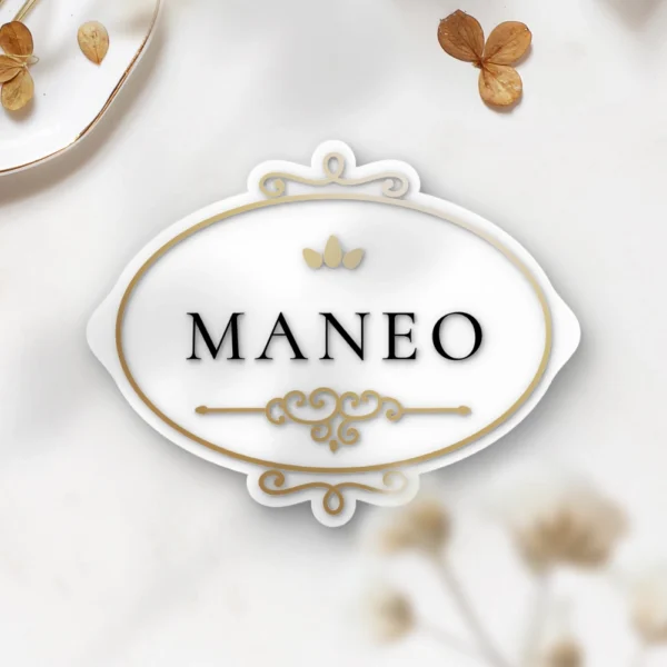 Doživite šarm prošlih vremena u suvremenom ruhu s pločicom “Retro”. Njen jedinstveni ovalni dizajn, ukrašen suptilnim zlatnim detaljima i vašim prezimenom u elegantnom kontrastu crnog na bijeloj podlozi, savršeno spaja vintage estetiku sa suvremenom sofisticiranošću. Ova pločica donosi dozu karaktera i elegancije svakom ulazu, pričajući priču o bezvremenskoj ljepoti koju vaš dom zaslužuje.