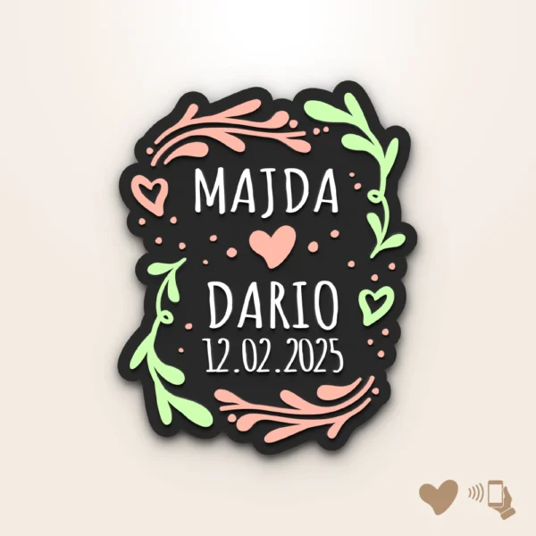 Proslavite ljubav živopisnim magnetom “Vivid Love” sa porukom ili omiljenom pjesmom. Njegov odvažan dizajn i personalizirani detalji čine ga posebnim poklonom za parove, savršenim za obilježavanje vjenčanja ili godišnjica s dodirom jedinstvenosti.
