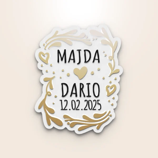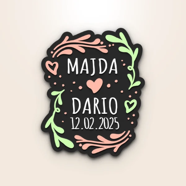 Proslavite ljubav živopisnim magnetom “Vivid Love”. Njegov odvažan dizajn i personalizirani detalji čine ga posebnim poklonom za parove, savršenim za obilježavanje vjenčanja ili godišnjica s dodirom jedinstvenosti.